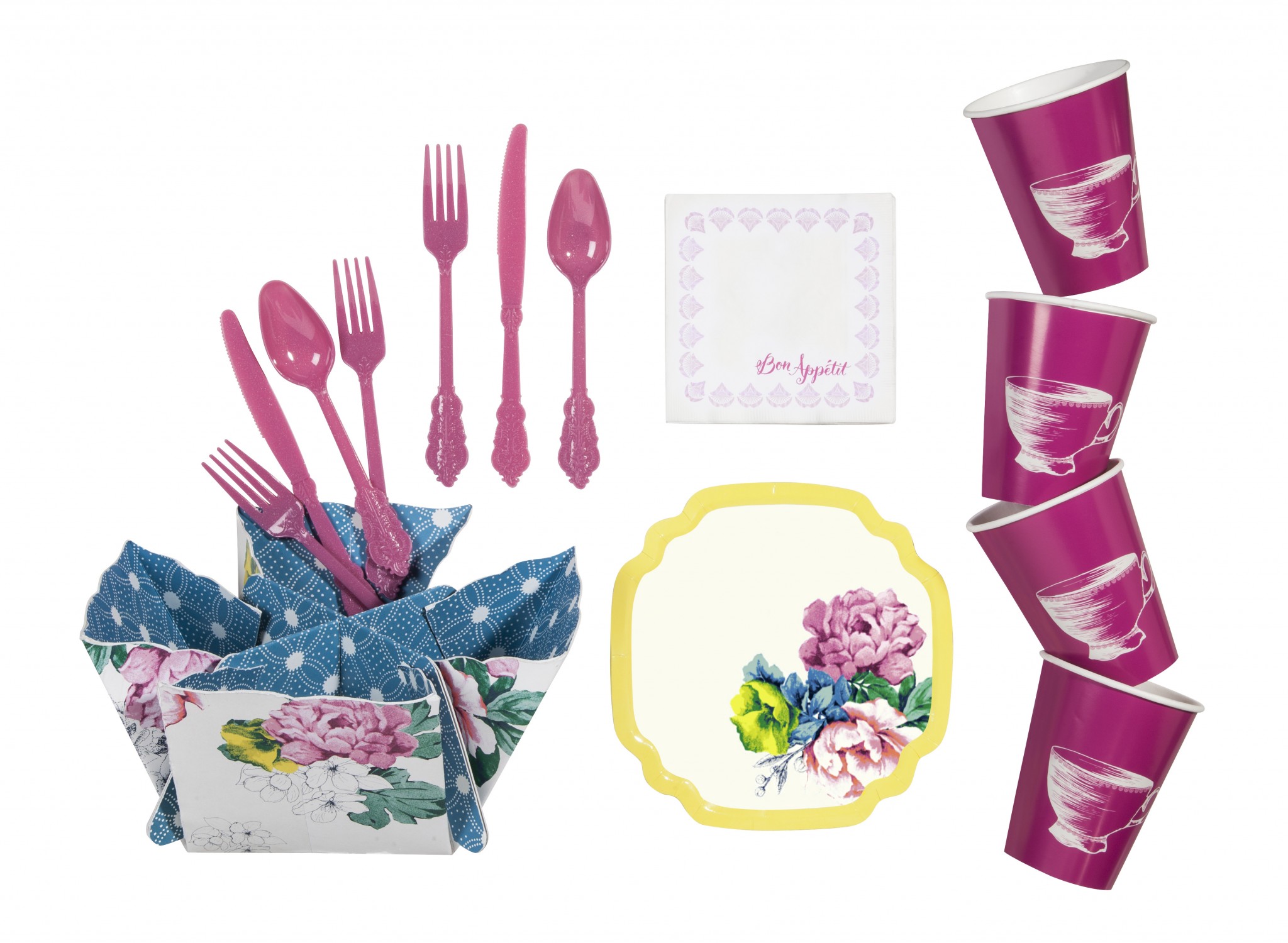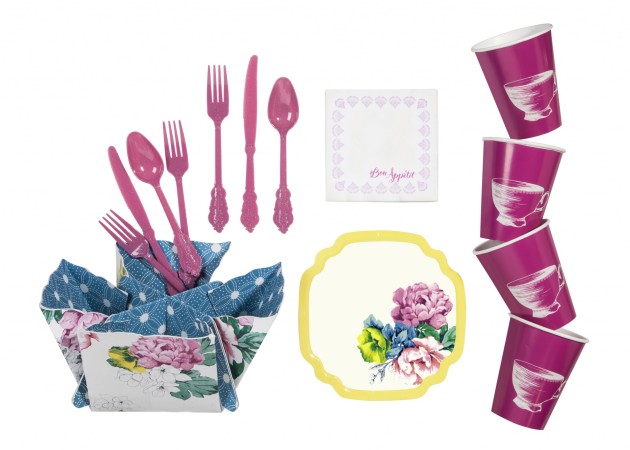 Ma préférée est la collection en association avec Poppytalk, ce blogue canadien qui se passe de présentation. J’aime d’amour les couverts en plastique rose, les assiettes à collation fleuries ainsi que les assiettes repas de même que les coupes à dessert. Une touche glamour chic tout en couleur. Cette collection sera disponible du 22 juin au 29 juillet, juste à temps pour vos soirées à la brunante.