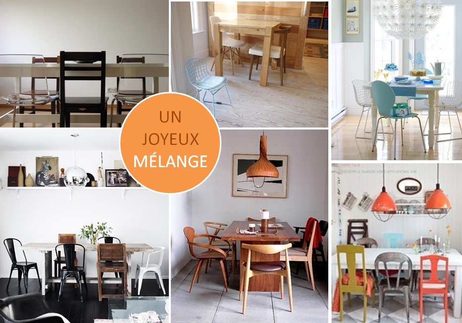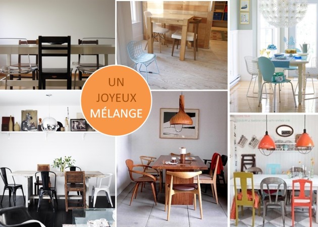 Il suffit de sortir du cadre et oser proposer un assortiment de chaises de style ou couleur différente qui une fois autour de la table, forment un ensemble convivial et invitant. Ce joyeux mélange est tout en lien avec le style vintage industriel qui gagne le cœur de bien des hipsters.