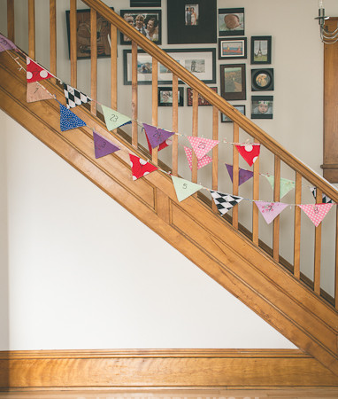 L’an dernier j’ai créé mon premier calendrier de l’avant, pour Cécile évidemment, afin de rendre le décompte des dodos avant l’arrivée de Santa Claus encore plus amusant. Je me suis inspirée des banderoles à fanions que j’aime tant. Mon calendrier a donc un double usage et a une durée de vie beaucoup plus longue. Il suffit de lui faire faire demi-tour afin de cacher le chiffre annonçant le décompte avant Noël et ainsi profiter d’une jolie banderole qui donne du ton à mon escalier.