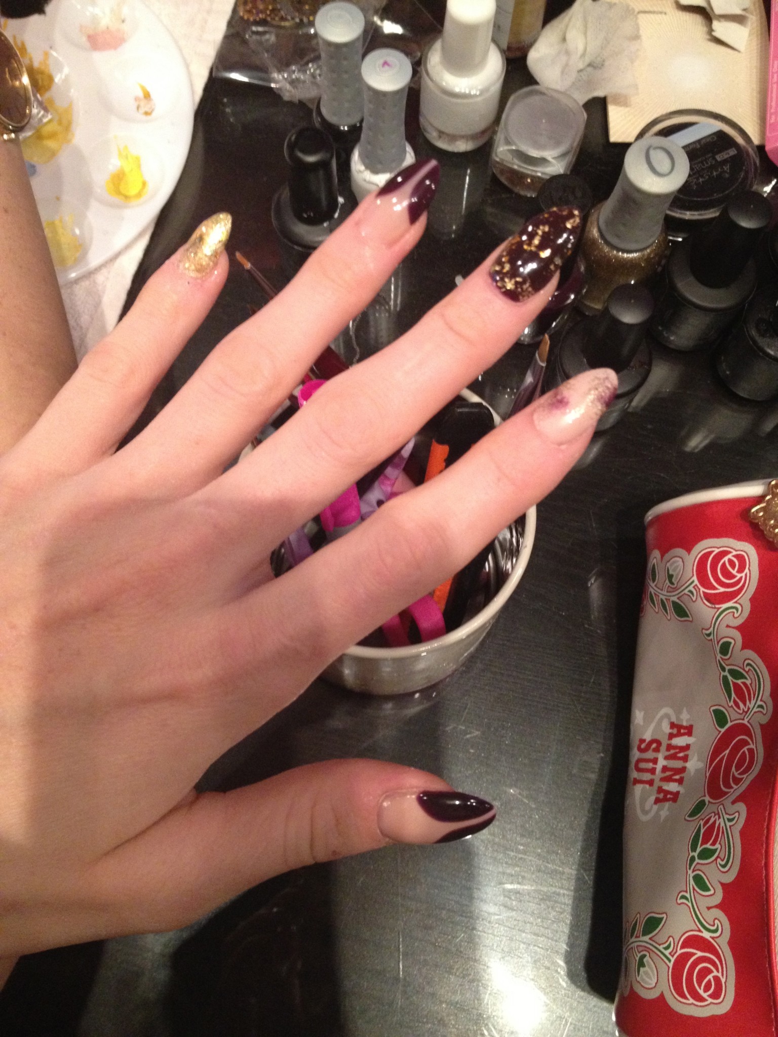 Ah oui, on a été bien diverties par Bride Wars qui jouait au salon et je ne pouvais arrêter de regarder la manucure de ma voisine, on en voit de plus en plus des longs ongles pointus, une tendance adoptée par certaines mais qui ne sera pas mienne de si tôt, même s’il ne faut jamais dire jamais.