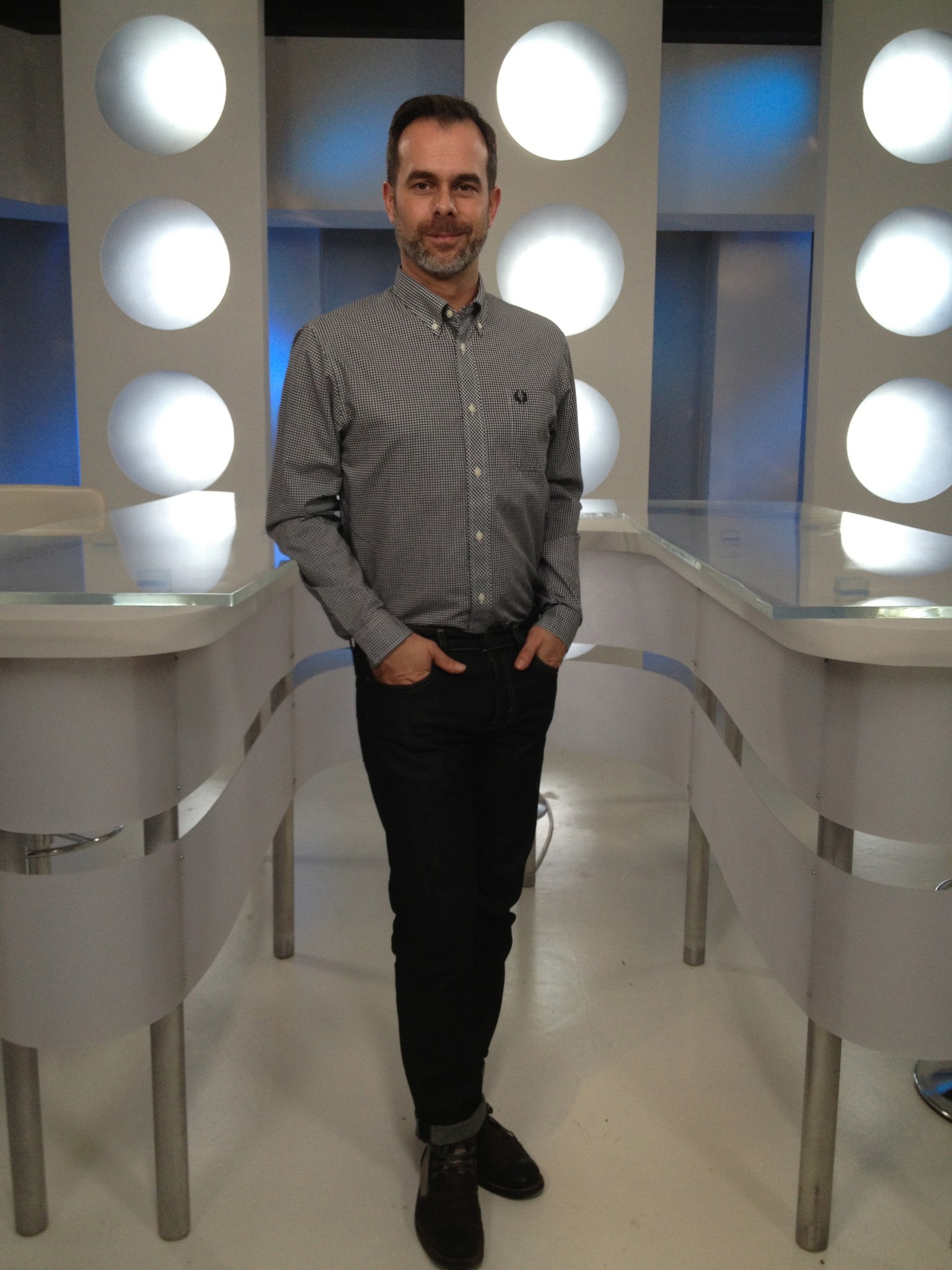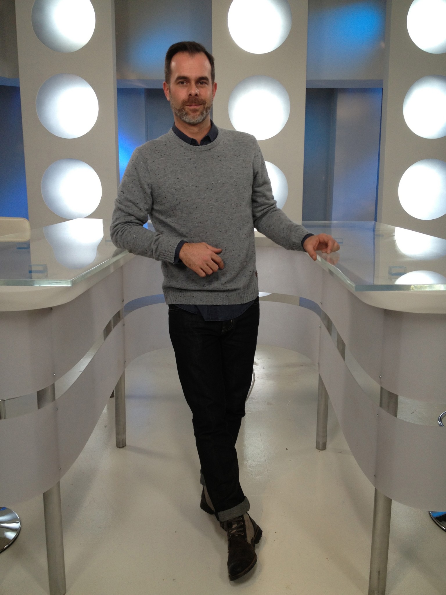 Nicolas est un mordu de mode, c’est donc avec beaucoup de plaisir que j’emplis (si c’est vraiment un mot!) son garde-robe de trouvailles à chaque semaine. Dès notre première rencontre à MusiquePlus, il nous a parlé de ses marques et boutiques préférées et de ses Acne jeans tout en étant conscient que des commandites du genre ne tombent pas du ciel, en effet! Au premier essayage, on l’a habillé en professeur d’école avec un polo, cardigan et un nœud papillon pour finalement revenir à un look plus simple au quotidien, toujours un peu preppy en Fred Perry mais aussi urbain en Levi’s, Diesel, Boxfresh et chaussé de sa paire de bottes JShoes préférée. Vous pouvez le voir à l’émission StarMag sur les ondes de Musimax.