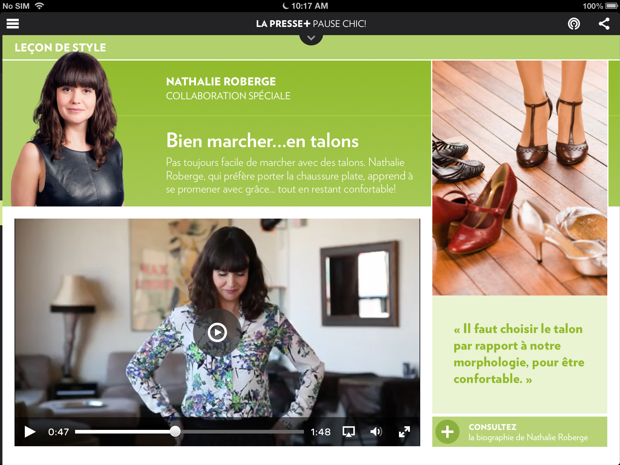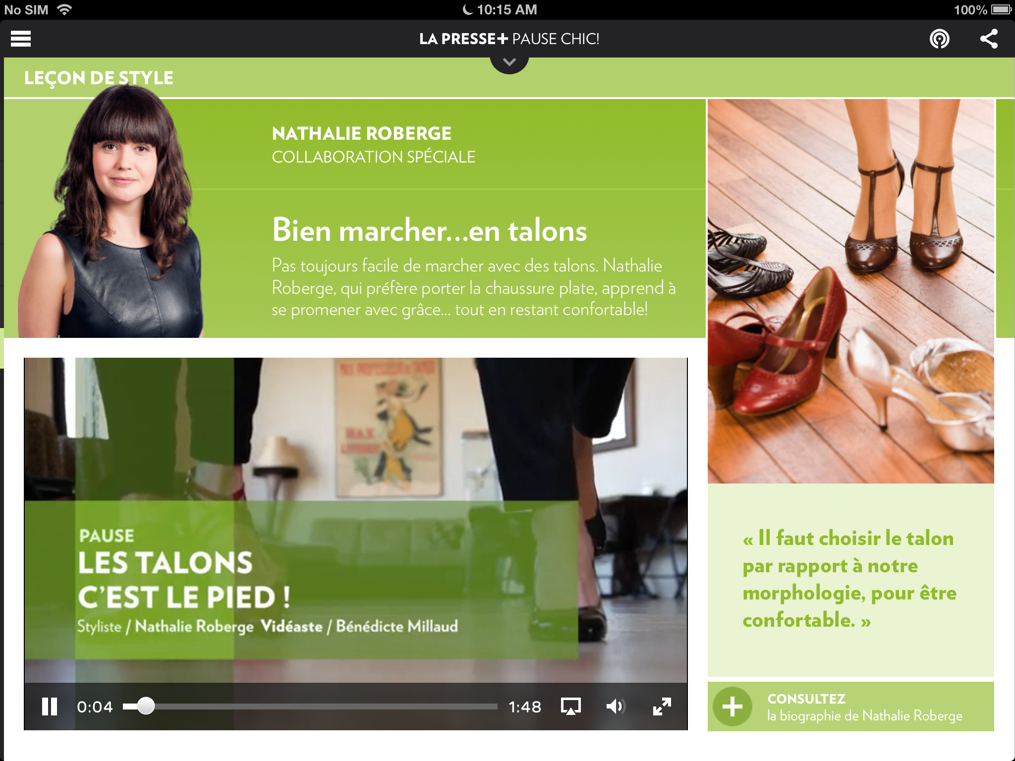Celles qui me suivent depuis un bout se rappelleront du premier vidéo réalisé à ce sujet et de mon histoire de cendrillon! Pour les autres, voici une initiation talon haut donné par la maître du talon haut, Tina Karr qui offre des ateliers de groupe et individuels pour vous aider dans votre démarche. Parce qu’un beau talon haut sans une belle démarche, ça annule toute élégance et féminité. Après ma deuxième visite en un an et demi, je suis ressortie du studio beaucoup plus à l’aise sur mes talons, il faut maintenant que je me pratique.