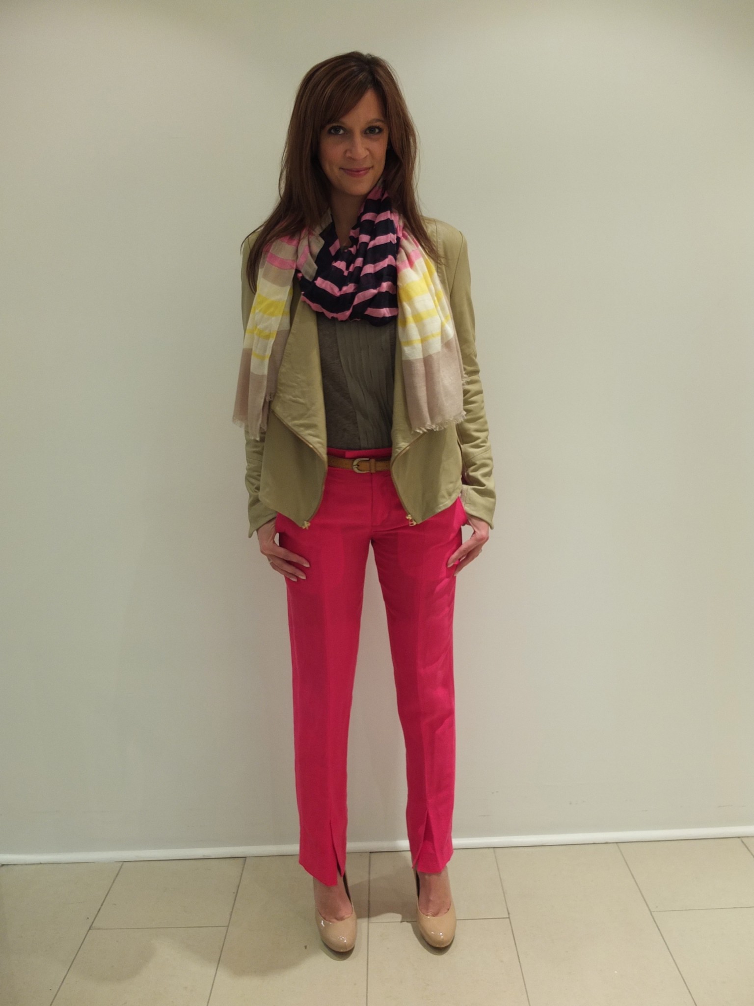 b) version avec foulard 49 $ et pantalon fuchsia 7/8 149 $